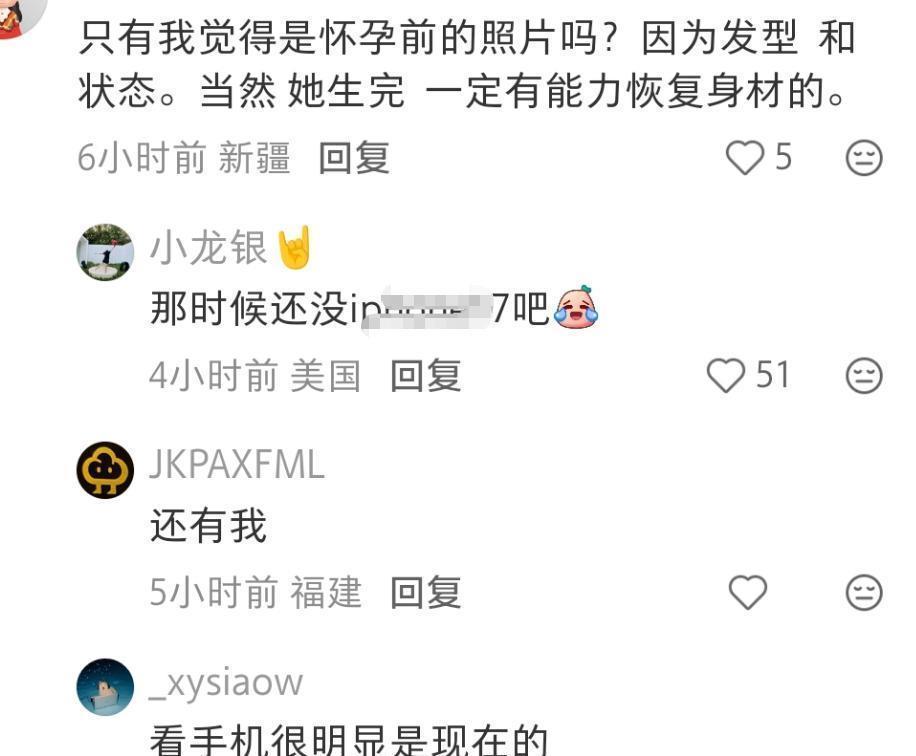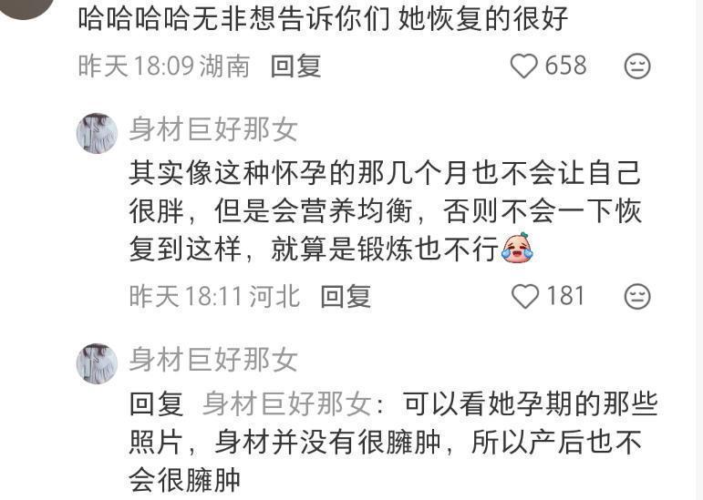 她产后恢复的确实很快,看她身材几乎没有一丝生育的痕迹,腰臀线条流畅,如果不是看她手上的新款手机型号,根本分辨不出到底是旧照还是新图。